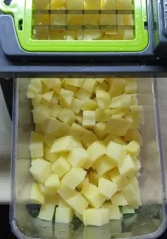 I got this as a Christmas present for my husband for Xmas. I was actually the first one to try it out. I made fried diced potatoes with our dinner tonight and decided to try out the chopper to save time. I'm in love with it and will probably end up using it more than he does. I was able to chop 3 large potatoes in less than 2 minutes. It's also very easy to manually clean and can go in the top rack of the dishwasher which I love. Overall a wonderful addition to the kitchen and I'm so happy I found it.